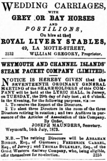 Hampshire Banking Company – This establishment, which has its head offices in Southampton, is about to open a branch bank in Jersey, at 2 Halkett Place. ---------
