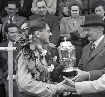 In 1949 the race was again won by Bob Gerard in an ERA, with Emmanuel de Graffenried from Switzerland second and Britain’s Raymond Mays third. Kenneth Bears died during practice on the eve of the race, but this did not stop it being held again the following year, when the winner was Peter Whitehead in a Ferrari.