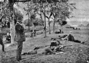 The annual meeting took place at Gorey Common. The Governor and the Bailiff presented handsome cups, and the colonels commanding regiments all presented prizes. Capt St Leger was camp commandant, and Capts Collas and Le Gros were range officers during the meeting, whilst Dr A Le Rossignol, Royal Jersey Militia, organized the medical services. These details are given as they show the type of meetings which have continued, with unavoidable breaks during the wars, continuously throughout Jersey history, down to the present time. There are no longer Militia officers, but there are many retired officers and men who, having served in Her Majesty's Forces, are continuing the good work today.