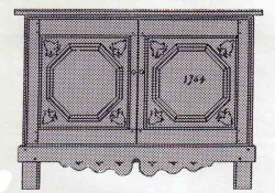 There is, however, a type of buffet a quatre portes from Brittany called a malouiniere, which has mouldings on its doors mitred to form large octagons and turned bosses in the corners of the panels. These cupboards are peculiar to the area of Saint Malo, and are said originally to have been made by Dutch prisoners of war. The period in question would have been during Louis XIV's incursions into the Spanish Netherlands in the late 17th century. The Dutch cupboards which were their inspiration, with their elaborately mitred mouldings enclosing octagonal and polygonal shapes, are from southern Holland and were being made in the middle of the 17th century. They, in their turn, are thought to have been introduced into the Netherlands by Spanish craftsmen who were familiar with Arabic designs: but to pursue these influences further is beyound the purpose of this investigation.