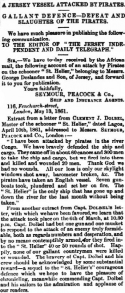 Note that many different Jersey vessels used the same names over the years. It was also not unknown for fleet owners to have two vessels in service at the same time with the same name. So where a captain is shown as master of a particular vessel, it may not be the same ship as another captain is shown as commanding. For this reason, although Jerripedia contains separate articles on a number of ships, particularly privateer vessels, we have not linked to them because the reference may be to another vessel of the same name.