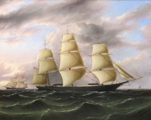 - "For this roaring California trade John Bertram and his partners built a famous American clipper, the John Bertram, of eleven hundred tons, at East Boston. The remarkable feature of this undertaking was that the ship was launched sixty days after the laying of her keel and ninety days from the time the workmen first laid tools to the timbers she was sailing out of Boston harbor with a full cargo, bound to San Francisco. The John Bertram was a staunch, able, and splendidly built ship, notwithstanding this feat of record-breaking construction. Thirty years after her maiden voyage she was still afloat in the deep-water trade, although under a foreign flag, a fine memorial of the skill and honesty of New England shipbuilders.