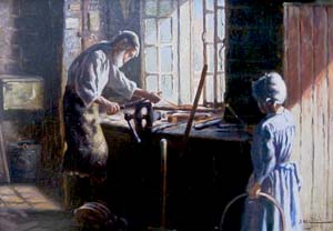 In the early stages of his career he also painted landscapes and pictures in the style of Millais. Violets, a picture of a Jersey flower girl was accepted by the Royal Academy in 1898.
