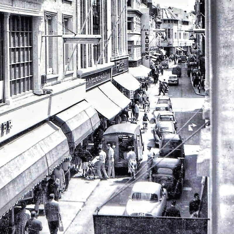 Burton's, Woolworth and the awnings of Noel and Porter beyond
