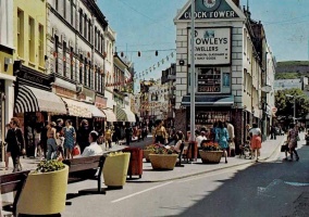 It was a slow process. At the beginning, in December 1971, a trial was conducted by barring traffic from the section from Halkett Place to Don Street, in front of Burton's, Woolworth and British Home Stores and cars were allowed to drive up the street from Charing Cross as far as Don Street. The pedestrianised area was not paved at the outset, just in case public opinion forced a change of mind and vehicles were again admitted. But the Jersey public was firmly in support of banning cars from the centre of their town, although the pedestrian area has not spread nearly as far as it was first envisaged might happen. Traffic was barred from the full length of King Street by 14 June 1974, and the street was then paved. The initial paving was replaced some time later with a smarter finish, which is still in place today.
