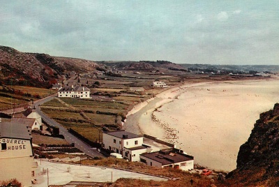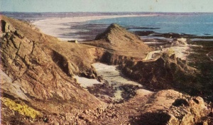The beach is an important part of L’Etacq. For many years it was a prime site for the collection of vraic and there is still some evidence of markers on the rocks that were used in this practice and the paths followed to cut it. Vraic collecting is a long tradition in Jersey and vraic was the prime fertiliser for the farmers of the Island. Sites for drying vraic were highly sought after. The Jersey Archive holds a