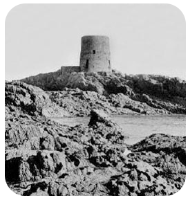 The Martello Tower was situated at the northern end of St Ouen's Bay about 1.5km from Lewis Tower. It was built in 1833 by contactor John Benest at a cost of £840. Armed with a 32pdr on the roof originally, a report of 1840 states there was a 24pdr on a traversing platform. It had accommodation for one sergeant and twelve men and a magazine holding 70 barrels of gunpowder.