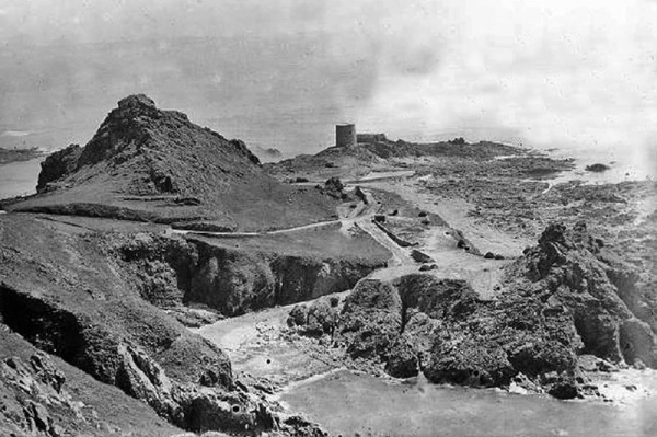 This tower at the northern end of St Ouen's Bay, also known as L'Etacquerel, was built between 1832 and 1834, and is of similar style to Martello towers. It was destroyed by the Germans in World War Two
