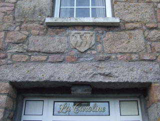 Main house: two-storey, five-bay. Front (south) elevation: slate roof with render chimneys. Coursed squared stone construction, with mainly rough-worked openings/quoins. Re-set above the door lintel is a shield of arms of de Carteret. The rear (north) elevation was not surveyed.