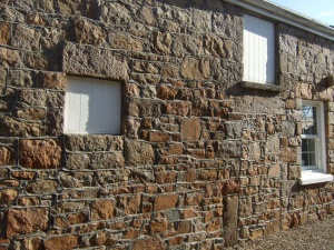 Within the roof space a pegged A-frame timber roof survives. The 18th century roof timbers in the west outbuildings are pegged through a halved lap join, not the more common lap joint.