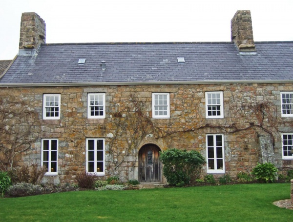 If the reconstructed west ground floor fireplace served an open hall dwelling the suggested fireplace behind the recently constructed one in the chamber above may have been constructed after the hall was ceilinged to provide a bedchamber in an unused void, probably circa 1660. The house displays Jersey’s vernacular tradition in the use of local materials and details. House with adjoining east dower wing, and west L-shaped wing.
