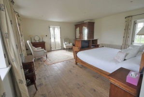 West adjoining stable-block: within has been recently constructed an open-plan space with the addition of reused old timbers forming a mediaeval-type roof, but the original rafters are still visible - they appear circa 1700.