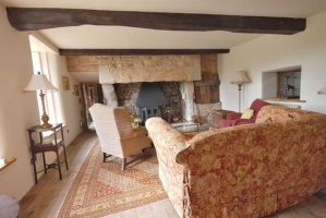 Within the first floor west chamber above, on the cross wall there is a recent or reconstructed stone fireplace. Its corbels are in a late 17th century style, but there is evidence that an earlier fireplace may have once existed behind.