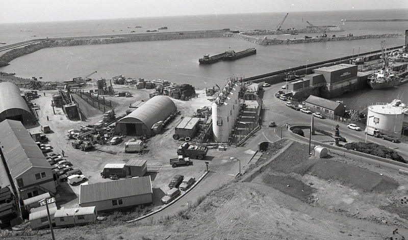 An aerial photograph taken before the reclaimed area was extended to take in the rocky area in the foreground