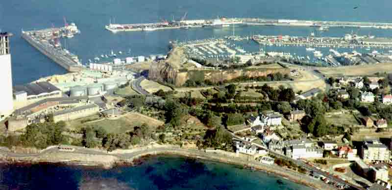 In the mid-19th century the States embarked on an ambitious project to build a large deep-water harbour with an arm stretching out from La Collette towards Elizabeth Castle, which would meet another arm from the castle. The latter was built and survives to this day, but as work progressed on the three-quarter mile long pier from La Collette it was breached in severe storms in the winters of 1874, 1875 and 1876 and the project was abandoned.