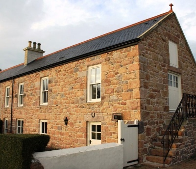 Variously sized openings due to former agricultural use. Elliptical arches for carriage entrances.