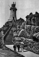 ![]() An Ouless etching of Corbiere Lighthouse on its completion in 1873 Corbiere, is on the south-west corner of Jersey, where a lighthouse has been protecting shipping from grounding on the rocky coastline for 150 years to view the location in Google Street View 360-degree panoramic view