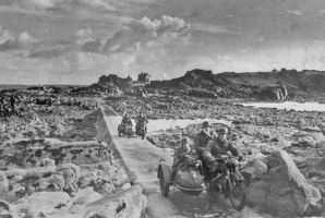 - "The headland is studded with concrete fortifications that the Germans left behind. Near their tall fire-control tower is a tiny cove known as La Rosiere (tbie may mean a place where reeds grow, from the old French ros a reed, or it may refer to wild roses, of a creeping variety, which grow in the vicinity). There are caves there which, it is firmly believed, used to be used by smugglers.