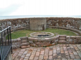 - 'The southerly part of the battery consists of four large embrasures for cannon. Two of the embrasures survive in their original 1834 form but two were modified by the German forces and now sit inside concrete shelters. A reinforced concrete emplacement was also inserted behind the screen wall. The northerly part of the battery consists of two traversing platforms with circular plan form. The original layout of the upper platform largely survives with the addition of a small reinforced concrete gun emplacement.