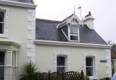 La Falaize: Semi-detached, two-storey, three-bay. Pitched slate roof, rendered corniced chimneys at ends