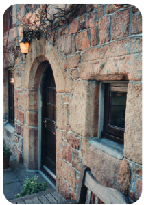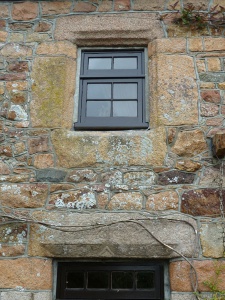 - "Most of the windows have been altered and enlarged, but one on the first floor, to the right of the arch, retains its original size and four surrounding stones.