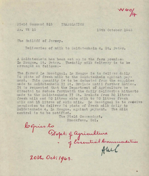 - Le Cornu: In 1943 Clarence Edward Le Cornu was farming at La Hougue, and at that time he placed an agricultural war claim for destruction of his crops. His claim was for hay, wheat and oak damage on 11 fields and nine vergées of meadows. Inspectors visited the farm and verified the claim at an assessment of £9 10s 10d for damage to wheat and oats.