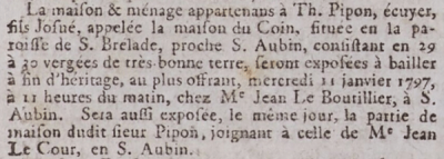 Maison du Coin is an L-shaped house with an older east-facing wing. The main features of the south-facing wing are dated by Joan Stevens in the first volume of Old Jersey Houses to the 18th century, but parts of the property are undoubtedly older because it is known to have been occupied by the Seale (Scelle) family in the previous century. There is a stone, moved from one part of the property to another, dated 1606. Jurat Thomas Seale died in the house in October 1646. In 1635 he had married Anne de Carteret, sister of Bailiff Sir George Carteret.