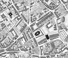 La Motte Street is one of the oldest streets in the town of St Helier, showing clearly on maps from as early as the 17th century. The road led from the end of Rue du Milieu (now Queen Street) at Carrefour de la Pompe de Haut (now Snow Hill) to Manoir de la Motte. The building was demolished in 1958 but there are conflicting views as to whether this was the original 15th century building or a later replacement. It may seem strange that there should have been a traditional Jersey country house on what is now a busy junction, but before La Motte Street was created, this was open countryside