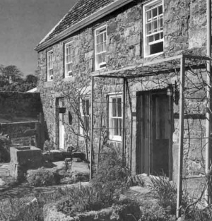 Two interesting finds in the garden are a cannon ball, about the size of an apple, which Joan Stevens says may have been connected with the French landing on the day of the Battle of Jersey in 1781, claimning that 'the geographical position of the house makes it possible that the ball was connected with de Rullecourt's landing'. [1]; and a metal spike with the remains of a wooden handle, which she thought may have been part of a halberd, again speculating that La Pelotte was a holding which owed halberd duty - the escort of prisoners from Mont Orgueil Castle to the Royal Court in town. [2]