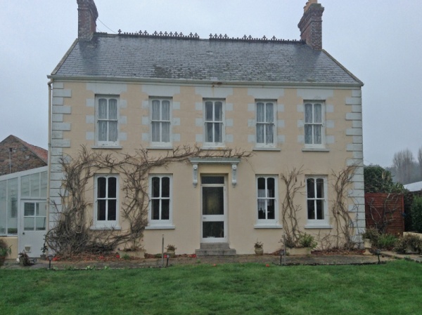 19th century farm group retaining historic character and exterior features, contributing to the rural setting. Two-storey five-bay farmhouse . Mid-20th century lean-to and greenhouse on west gable. Single storey farm range, with throughway, runs from the northwest corner of the house, returning in a circa 1950s garage to connect to a single storey carriage house on the east boundary. All create a courtyard to the north of the house.