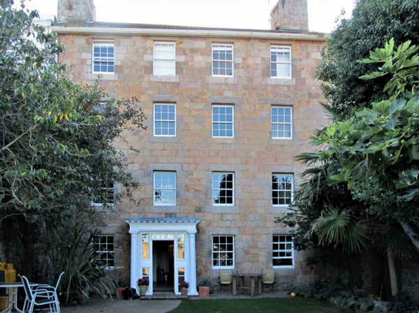 - ↑ The fourth floor was undoubtedly a 20th century addition but, contrary to the opinion expressed by the author of Old Jersey Houses that the granite is so well matched that it is not possible to notice the addition, there is a clear difference, which can be seen in the large picture at the top of the page. Close examination suggests that the property originally had just two stories - three would have been very unusual in the 17th century - and has been heightened twice. The granite on the facade of the first two stories is noticeably much paler than that used on the upper floors. The shade of red granite on the top floor has clearly been chosen to be as close a match as possible for the third floor below. The granite work across the third floor is not only a different hue to that below, but also of a much smoother finish. The stonework on the top storey matches the third in colour, but the granite blocks have a similar rough finish to the two bottom stories. The proportions of the facade have also been spoilt by the use of five layers of stones between the second and third floors, and only four between first and second and third and fourth. There have clearly been two laudable attempts to continue the original style when extending the building, but they have not been entirely successful.
