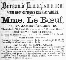 - Mrs Jane Le Boeuf ran an agency providing servants from 19 St James Street