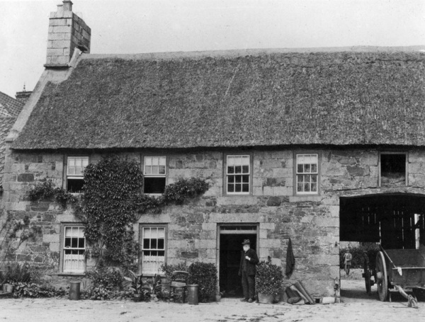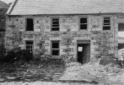 The two houses on the site comprised the older of the two farmhouses (see photographs, one of which was taken in the early stages of demolition) and the newer south-facing house that will have replaced the former as the main house in the late-18th century. A chimney and part of the tiled roof of this building can be seen to the left, behind the old farm, in both pictures. It was a fine example of a late 18th century house, with five bays on the first floor and four bays, two on each side of the front door, on the ground-floor. The house had a decorative ashlar frontage. Standing in the garden, facing the front of the house, one saw on the right, a conservatory forming the corner between the garden wall and the house. In front of this, against the same wall, which separated the garden from the main road, was a fig tree. Behind the two houses, was a cobbled yard consisting of sea-worn former beach cobbles. When standing with one`s back to the newer house, outside the back door, the left side of the yard was bordered by the outhouse used as a tackle/harness house. Located on this building, a little to the left of the man holding a hoe, in the far background, was the 1716 engraved stone.