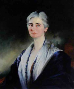 Portrait by John St Helier Lander of Alice Maria Le Maistre (1870-1940), née Le Cornu, in the Museum collection. Lander's portrait of her husband is in the family album section below