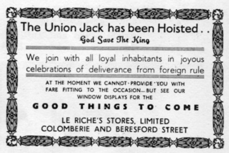 Le Riches on the corner of Colomberie and Grenville Street. The building was later destroyed by fire