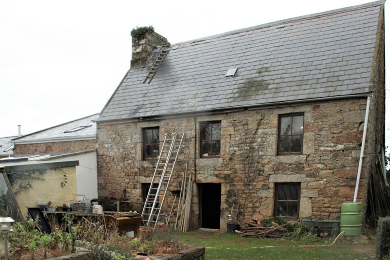 Behind this 1841 house there is a far older structure. Its windows have been enlarged, though happily with granite, and there are simple fireplaces on the ground floor, one of which has a bread oven beside it.