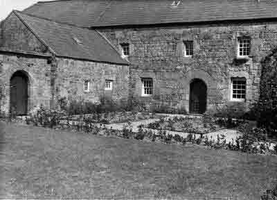 Ground floor room has a benitier in the north wall with trefoil head circa 1500 and the remains of a late medieval fireplace modified circa 1910.
