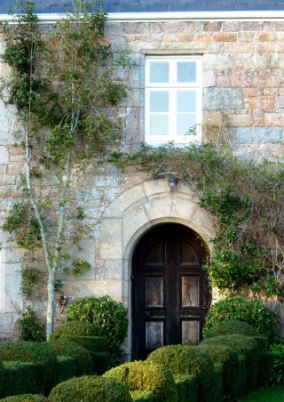 The house has an imposing facade which has been altered many times. The entrance of the main house is of the uncommon recessed kind; that is to say the stones above the arch are buttressed out. The window to the right of the front door are uniform and of late pattern; those to the left are varied in size and pattern. One window of the upper storey has unusual marked chamfer stops and its lintel has a raised, carved design, perhaps a fleur-de-lis.