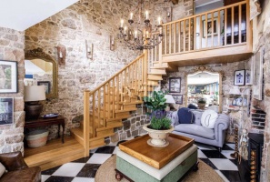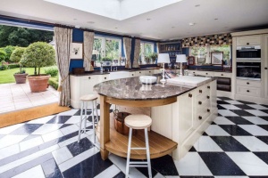 - "Along the north-facing side is a laundry room, a linen room (with slate-lined hardwood shelving) a high-ceilinged additional living room (the map room) as well as a large multi-use room with newly fitted bi-fold doors opening on to the courtyard. The latter could be used as a pool room, a gym, or a home cinema.
