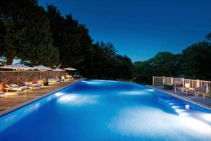 - "The rear central courtyard also offers access to the property's 20m x 9.5m heated outdoor pool. Housed in a large raised decking area, the pool features an infinity edge providing stunning views over the property's own valley below. Surrounding the pool there is extensive space for sunbathing and entertaining and this area also benefits from a separate spa pool and gazebo.
