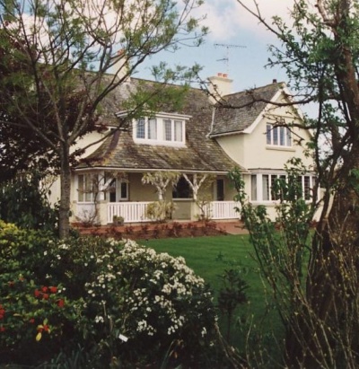 1920s Arts and Crafts style detached house which retains its exterior character. One of a row of substantial early 20th century detached houses in similar style lining this part of the coast road, set in large gardens.