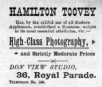 | Toovey and Snow | 36 Royal Parade, 1894 | Some photos naming the Don View Studio, others the Photographic Studio) |