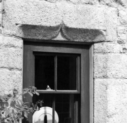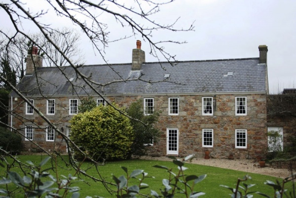 Parallel with, to the north, is a building of 17th century origin, restored in 20th century as a two-storey, five-bay house, now La Vieille Maison. Slate roof with brick chimneys and dormers. Chamfered round arch doorway in centre.