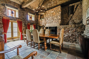 The interior of the main house retains two corbelled fireplaces, but otherwise has been remodelled in the 20th century.
