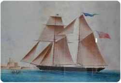 Capt Joseph Barette, for whom Malta House was built, and his ship Electric Flash below
