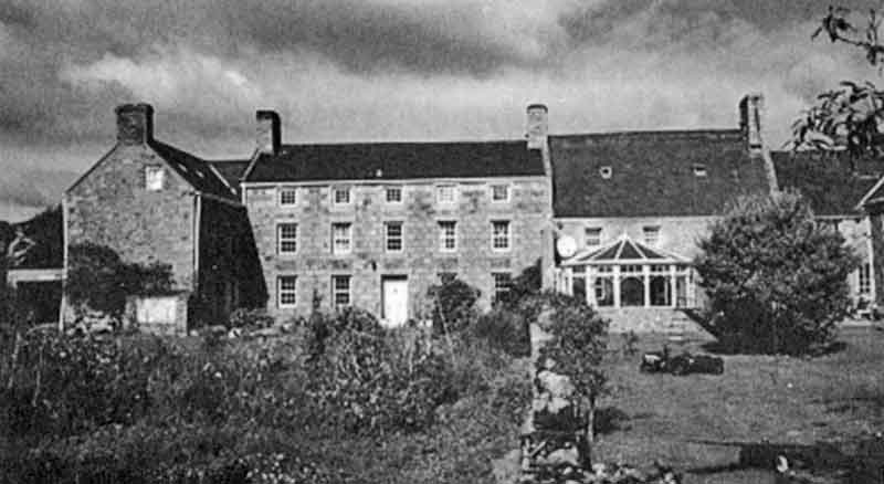 Farm group comprising 19th century three-storey five -bay house with 17th century two-storey three bay house to east. To east and west further two-storey wings returning south. East wing connected to 17th century in 20th century.