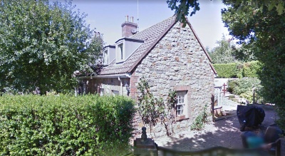 The interior is two rooms wide, single pile with central passage. Room to west has large granite fireplace with thin corbels and uprights at base, the back has been rebuilt, later timber lintel. Room to east has granite fireplace with wider corbels, one of them faintly rimmed; uprights at base; new stone lintel. Thick wall to east gable end. Beam with beading detail.