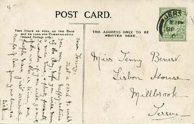A postcard sent to Jenny Benest at home in 1905