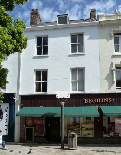 10 Broad Street was part of Beghin's until it closed in 2019. It was occupied in 1833 by Eagle Fire Office agent J Blampied, followed in 1852 by Collas Jouault's fancy repository. There are no census records for the property until 1861, when it was occupied by Fanny Skelly (1833- ) a publican. This does not necessarily mean that No 10 was a public house, but the 1874 commercial directory listing for P Briard and 1880 almanac listing of A Lavesa, both as publicans, suggest that it definitely was.