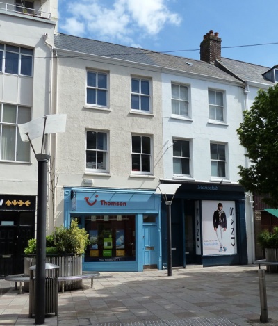 12 Broad Street was the only premises on this side of the street known to have housed a bank. In the 1852 Post Office directory the Jersey British Exchange Bank is shown there, as well as milliner Mrs Fanny Hamont (1815- ). The 1851 census reveals her to have been born in Finistere, the wife of Trouet Hamont, a Cooper, born in the Seine department of France. Their daughter Louise (1835- ) was born in Garonne.